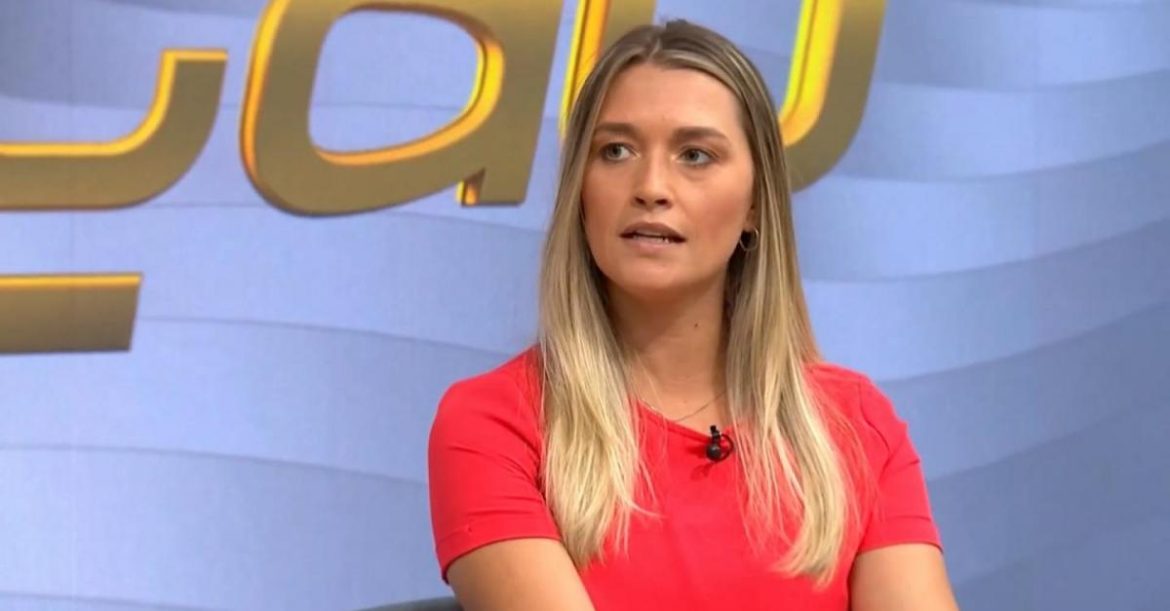 A jornalista Ana Thaís Matos, primeira mulher a comentar a Copa na TV Globo (Reprodução/SporTV)